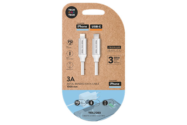 CABLE PD BLANCO NYLON 1M 3A TECH ONE TECH USB-C a LIGHTN/APPLE