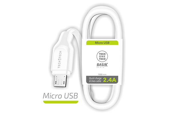 CABLE BASIK BLANCO 1 MT. 2.4A TECH ONE TECH USB-A a MICRO USB