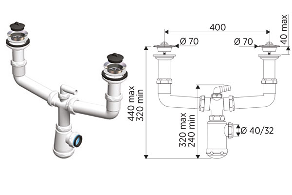 SIFON COMPACTO Y LAVABO-BIDET SALIDA 40/32 BRIXO AQ 801377 – 801377