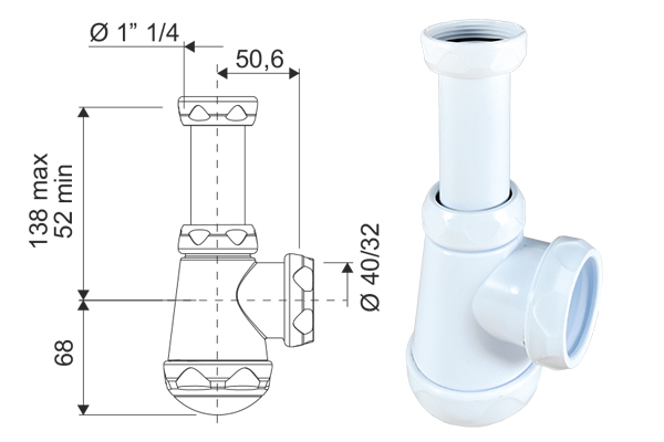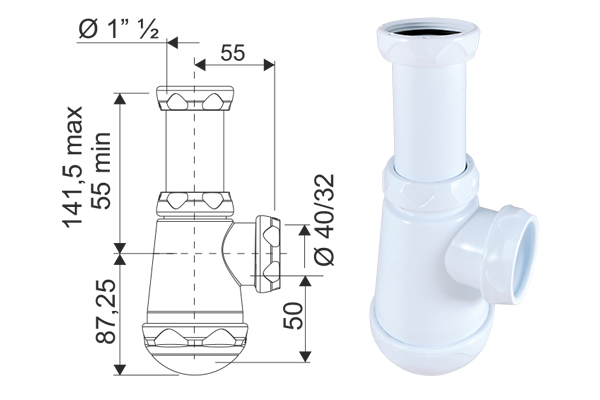SIFON BOTELLA EXT. 1 1/4 SALIDA HORIZ. 40/32 801542 BRIXO ACQUA – 801542