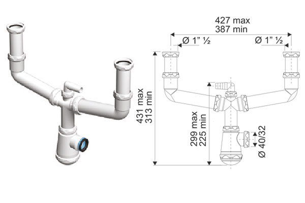 SIFON BOTELLA EXT. 1 1/2 SALIDA HORIZ. 40/32 801383 BRIXO ACQUA