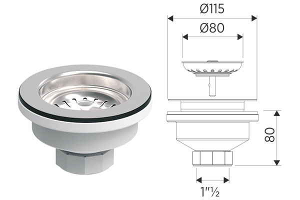 VALVULA CESTA INOX FREGADERO 1″ 1/2 X 115 BRIXO AQUA 801389