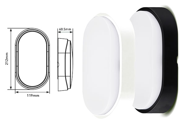 APLIQUE LED OVALADO NEGRO/BLANCO 700LM 10W 4000K IP54 LUCECO