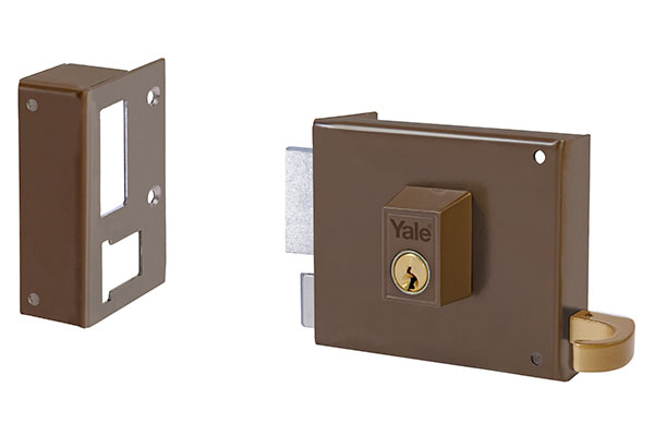 Picaporte accionado por llave exteriormente y con llave y tirador desde el interior.