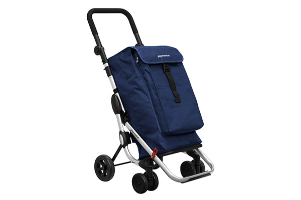 Carro de aluminio de 4 ruedas. Para evitar cargas innecesarias. Base inferior abatible.