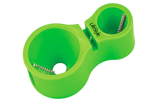 Doble Cortador Espiral 3,5 Ø y 6 cm Afilador CuchillosIncorpora un afilador de cuchillos.2 cavidades para alimentos estrechos (zanahoria) y gruesos (calabacín).