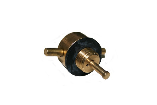 Adaptador de aparato rojo a botella azul. Para poder adaptar un aparato de una marca a una botella de gas de otra marca. Para botella azul