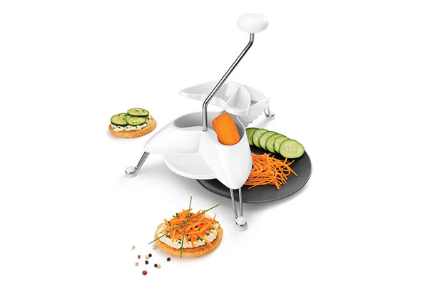 Con 3 discos acero inox: rallado grueso, rallado medio y rebanador